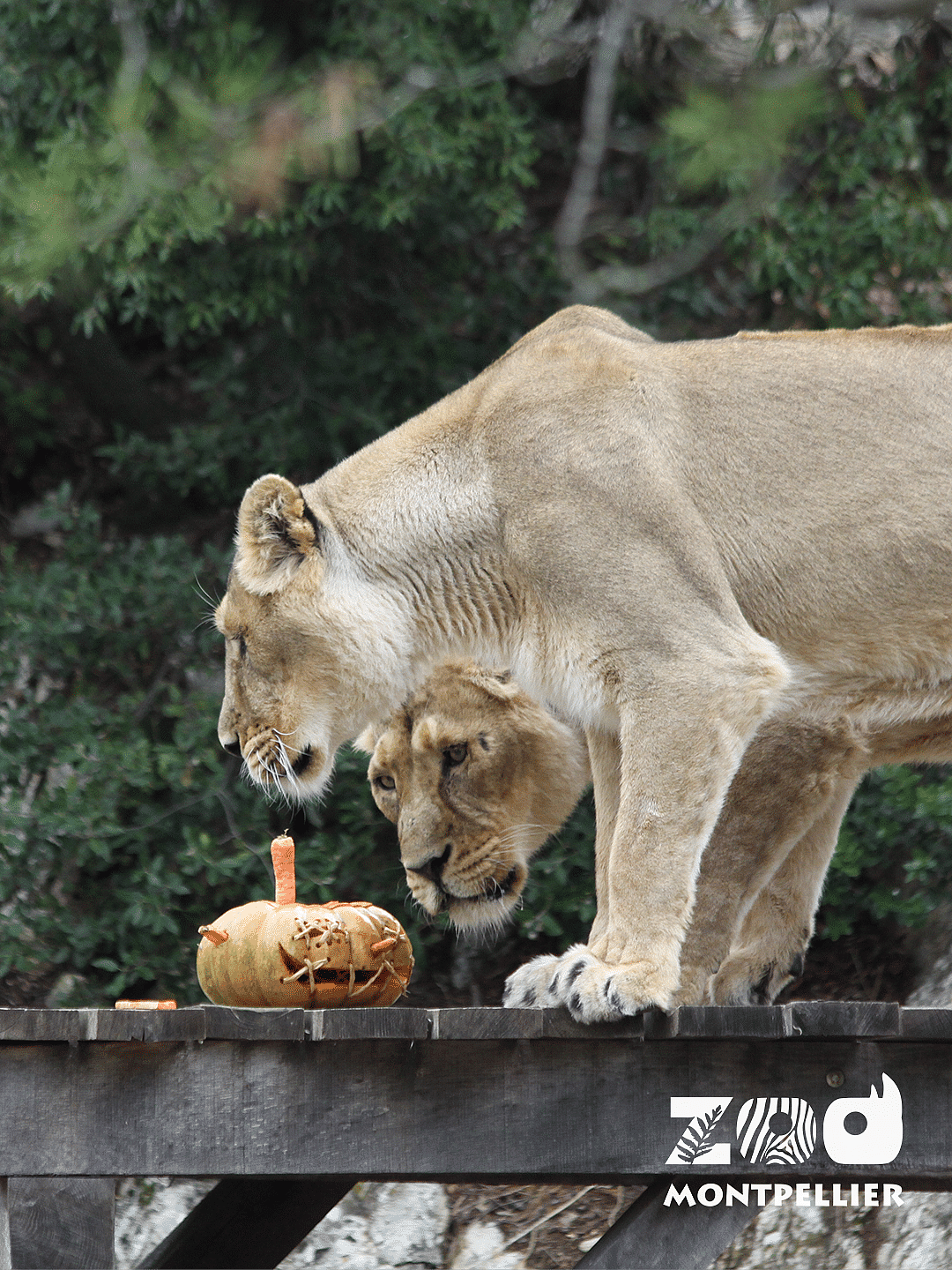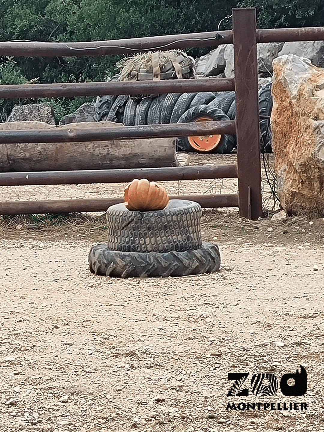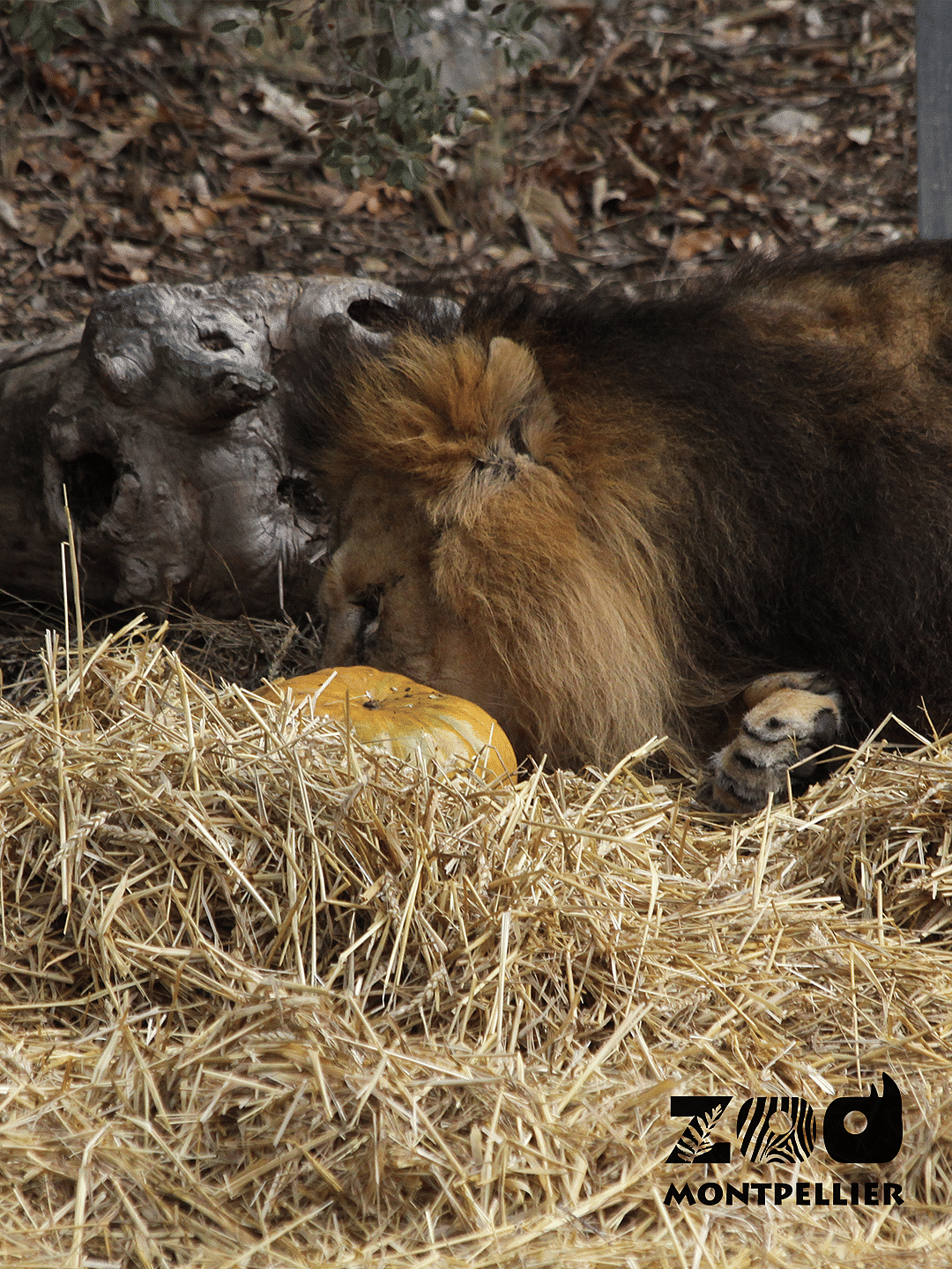 Dans le même ordre d’idée, nous avons proposé 3 citrouilles aux lions afin qu’il y en ait suffisamment pour ne pas créer de tension. L’observation des comportements des individus au sein de leur groupe permet aux soigneurs une connaissance accrue de leur “personnalité” et in fine de s’adapter afin de réduire au minimum les risques de tension.