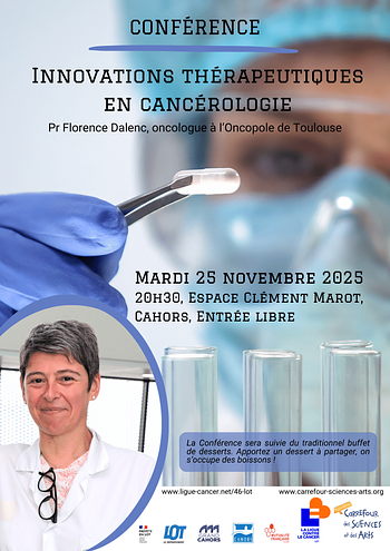 Cette conférence est co-organisée par le comité du Lot de la Ligue contre le Cancer et l'association Carrefour des Sciences et des Arts.
